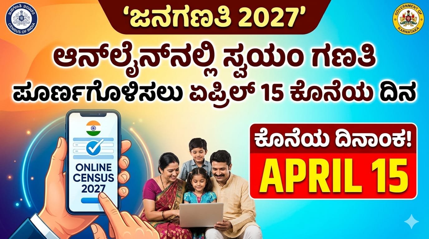 ಜನಗಣತಿ 2027: ಆನ್ಲೈನ್ನಲ್ಲಿ ಸ್ವಯಂ ಗಣತಿ ಪೂರ್ಣಗೊಳಿಸಲು ಏಪ್ರಿಲ್ 15 ಕೊನೆಯ ದಿನ