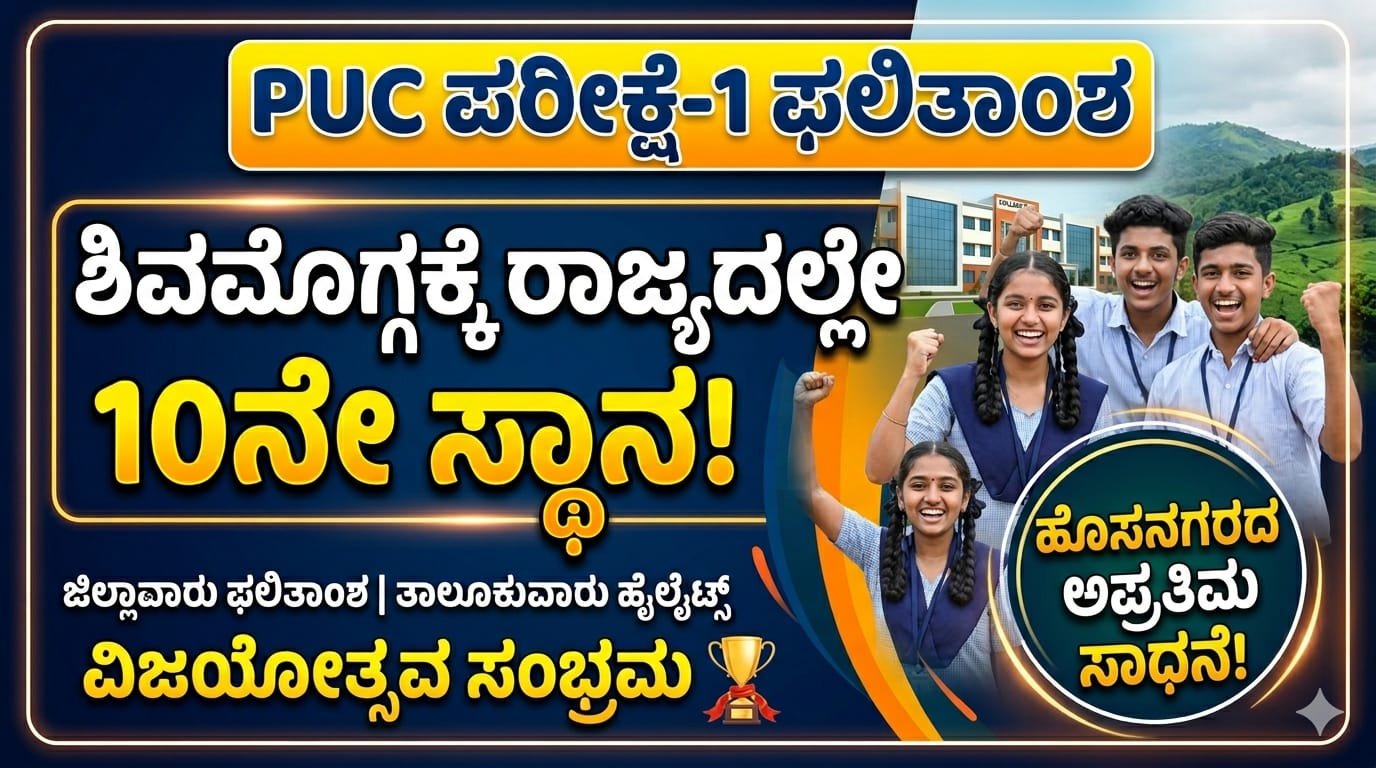 ಶಿವಮೊಗ್ಗ: ಕರ್ನಾಟಕ ಶಾಲಾ ಪರೀಕ್ಷೆ ಮತ್ತು ಮೌಲ್ಯನಿರ್ಣಯ ಮಂಡಳಿಯು ಇಂದು ಪ್ರಕಟಿಸಿದ 2026ರ ದ್ವಿತೀಯ ಪಿಯುಸಿ (ಪರೀಕ್ಷೆ-1) ಫಲಿತಾಂಶದಲ್ಲಿ ಶಿವಮೊಗ್ಗ ಜಿಲ್ಲೆಯು ರಾಜ್ಯಮಟ್ಟದಲ್ಲಿ 10ನೇ ಸ್ಥಾನ ಪಡೆಯುವ ...