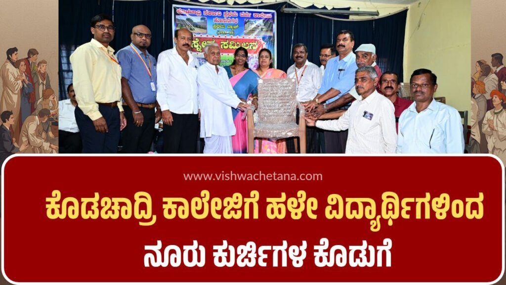 ಹೊಸನಗರ: ಇಲ್ಲಿನ ಕೊಡಚಾದ್ರಿ ಸರ್ಕಾರಿ ಪ್ರಥಮ ದರ್ಜೆ ಕಾಲೇಜಿನ 1985–88ನೇ ಸಾಲಿನ ಪ್ರಥಮ ಬ್ಯಾಚ್ನ ಕಲಾ ಹಾಗೂ ವಾಣಿಜ್ಯ ವಿಭಾಗದ ಹಳೇ ವಿದ್ಯಾರ್ಥಿಗಳು ಇತ್ತೀಚೆಗೆ ಕಾಲೇಜಿನಲ್ಲಿ ಆಯೋಜಿಸಿದ್ದ ಸ್ನೇಹ ಸಮ್ಮಿಲನ ಕಾರ್ಯಕ್ರಮದ ವೇಳೆ ತಾವು ವ್ಯಾಸಂಗ ಮಾಡಿದ ಕಾಲೇಜಿಗೆ ರೂ. 60 ಸಾವಿರ ಮೌಲ್ಯದ ನೂರು ಪ್ಲಾಸ್ಟಿಕ್ ಕುರ್ಚಿಗಳನ್ನು ಕೊಡುಗೆಯಾಗಿ ನೀಡಿದರು.