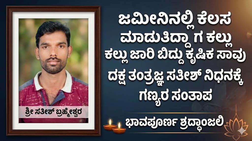 ಹೊಸನಗರ: ಜಮೀನಿನಲ್ಲಿ ಕೆಲಸ ಮಾಡುತ್ತಿದ್ದಾಗ ಕಲ್ಲು ಜಾರಿ ಬಿದ್ದು ಕೃಷಿಕ ಸಾವು; ದಕ್ಷ ತಂತ್ರಜ್ಞ ಸತೀಶ್ ನಿಧನಕ್ಕೆ ಗಣ್ಯರ ಸಂತಾಪ