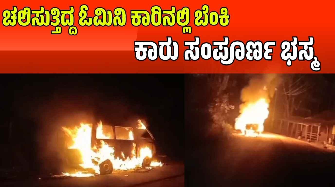 ಚಲಿಸುತ್ತಿದ್ದ ಓಮಿನಿ ಕಾರಿನಲ್ಲಿ ಬೆಂಕಿ!