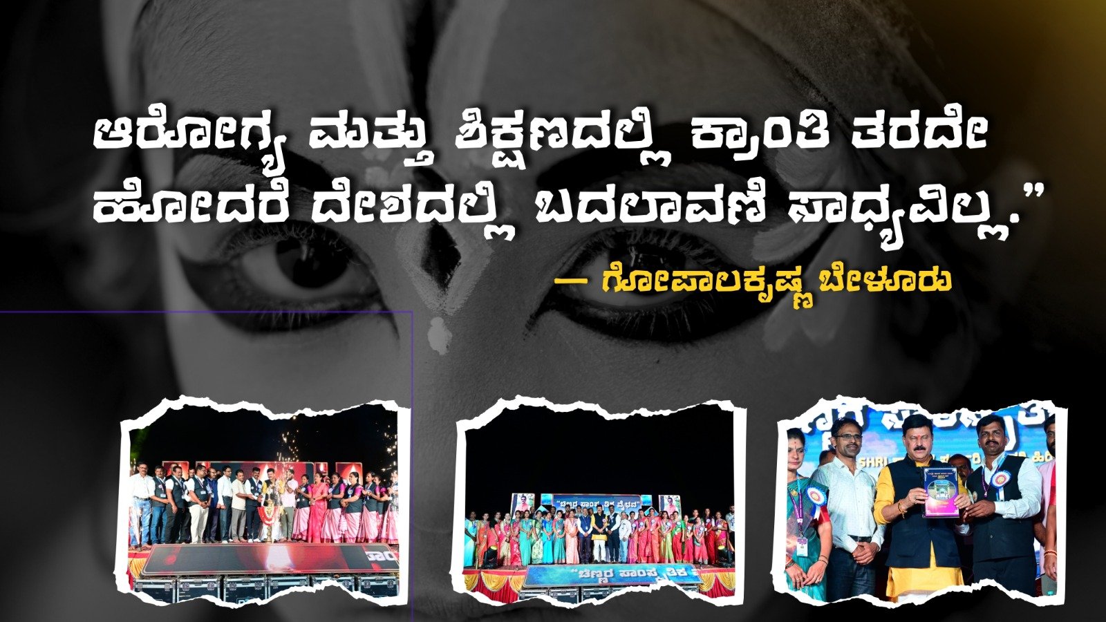“ಆರೋಗ್ಯ ಮತ್ತು ಶಿಕ್ಷಣದಲ್ಲಿ ಕ್ರಾಂತಿ ತರದೇ ಹೋದರೆ ದೇಶದಲ್ಲಿ ಬದಲಾವಣೆ ಸಾಧ್ಯವಿಲ್ಲ.”— ಗೋಪಾಲಕೃಷ್ಣ ಬೇಳೂರು