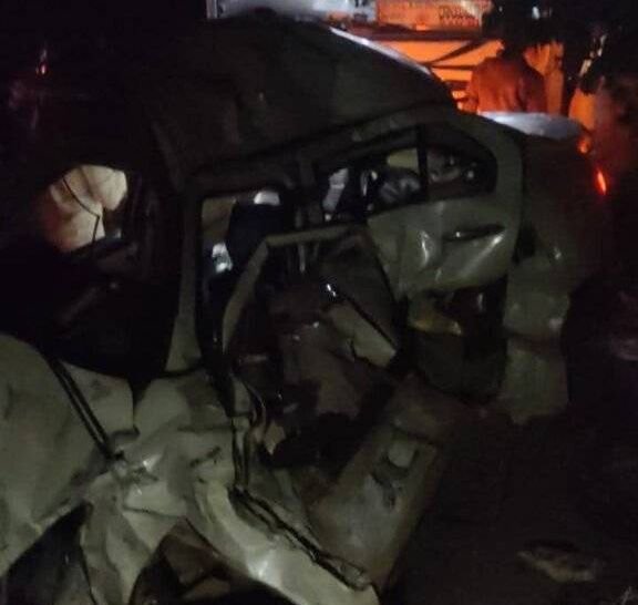 ತೀರ್ಥಹಳ್ಳಿ ತಾಲ್ಲೂಕಿನ ಭಾರತೀಪುರ ಸಮೀಪ ರಾತ್ರಿ ಸಂಭವಿಸಿದ ಭೀಕರ ರಸ್ತೆ ಅಪಘಾತದಲ್ಲಿ ಕಾರು ಸಂಪೂರ್ಣವಾಗಿ ನಜ್ಜುಗುಜ್ಜಾಗಿದೆ. ಅಪಘಾತದ ತೀವ್ರತೆಯಿಂದಾಗಿ ಇಬ್ಬರು ಸ್ಥಳದಲ್ಲೇ ಮೃತಪಟ್ಟಿದ್ದು, ಇನ್ನೂ ಹಲವರು ಗಂಭೀರವಾಗಿ ಗಾಯಗೊಂಡಿದ್ದಾರೆ ಎಂದು ತಿಳಿದು ಬಂದಿದೆ.