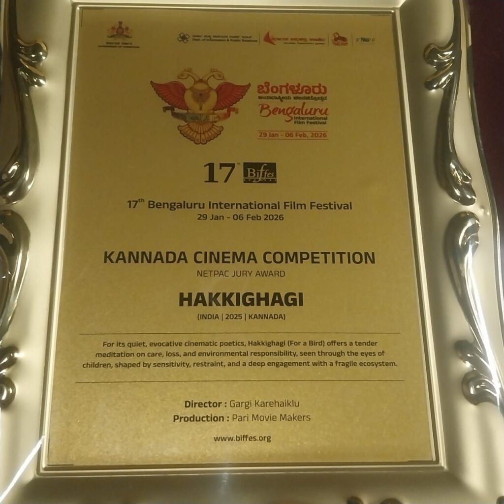 ಬೆಂಗಳೂರು: ರಾಜಧಾನಿಯಲ್ಲಿ ನಡೆದ ೧೭ನೇ ಬೆಂಗಳೂರು ಅಂತಾರಾಷ್ಟ್ರೀಯ ಚಲನಚಿತ್ರೋತ್ಸವದಲ್ಲಿ (BIFFes) ಮಲೆನಾಡಿನ ಸೊಗಡು ಹಸಿರಾಗಿ ಮೂಡಿಬಂದಿದೆ. ಹೊಸನಗರ ಮತ್ತು ಸಾಗರ ತಾಲ್ಲೂಕಿನ ಕಲಾವಿದರೇ ಹೆಚ್ಚಾಗಿರುವ, ಗಾರ್ಗಿ ಕಾರೇಹಕ್ಲು ನಿರ್ದೇಶನದ ‘ಹಕ್ಕಿಗಾಗಿ’ ಸಿನಿಮಾವು ಕನ್ನಡ ಚಲನಚಿತ್ರ ಸ್ಪರ್ಧಾ ವಿಭಾಗದಲ್ಲಿ ಪ್ರತಿಷ್ಠಿತ ‘NETPAC JURY AWARD’ ಮುಡಿಗೇರಿಸಿಕೊಳ್ಳುವ ಮೂಲಕ ಮಲೆನಾಡಿನ ಕೀರ್ತಿಯನ್ನು ಹೆಚ್ಚಿಸಿದೆ.