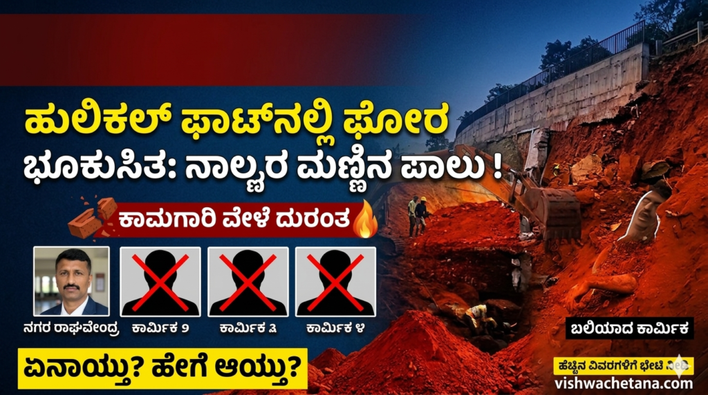 ಶಿವಮೊಗ್ಗ ಜಿಲ್ಲೆಯ ಹೊಸನಗರ ತಾಲೂಕಿನ ಪ್ರಮುಖ ಸಂಪರ್ಕ ಕೊಂಡಿಯಾದ ಹುಲಿಕಲ್ ಘಾಟ್ನಲ್ಲಿ ಕಳೆದ ಕೆಲವು ದಿನಗಳಿಂದ ರಸ್ತೆ ಅಗಲೀಕರಣ ಮತ್ತು ತಡೆಗೋಡೆ (Retaining Wall) ನಿರ್ಮಾಣದ ಕೆಲಸ ಸಾಗುತ್ತಿತ್ತು. ಇಂದು ಸಂಜೆ ಸುಮಾರು 6:00 ಗಂಟೆಯ ಸುಮಾರಿಗೆ ಕಾರ್ಮಿಕರು ಹೇರ್ಪಿನ್ ತಿರುವಿನ ಬಳಿ ಕೆಲಸ ಮಾಡುತ್ತಿದ್ದಾಗ, ದರೆ ಮೇಲ್ಬಾಗದಿಂದ ಭಾರಿ ಪ್ರಮಾಣದ ಮಣ್ಣು ಮತ್ತು ಕಲ್ಲುಗಳು ದಿಢೀರನೆ ಕುಸಿದು ಬಿದ್ದಿವೆ.