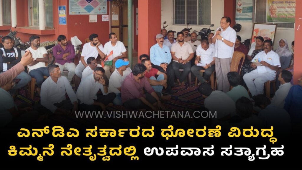 ಶುಕ್ರವಾರ ಬೆಳಿಗ್ಗೆ 9 ಗಂಟೆಯಿಂದಲೇ ಕೆಪಿಸಿಸಿ ನಿರ್ದೇಶನದಂತೆ ಮಾಜಿ ಸಚಿವ ಶ್ರೀ ಕಿಮ್ಮನೆ ರತ್ನಾಕರ್ ಅವರ ನೇತೃತ್ವದಲ್ಲಿ ಒಂದು ದಿನದ ಉಪವಾಸ ಸತ್ಯಾಗ್ರಹ ಹಮ್ಮಿಕೊಳ್ಳಲಾಗಿದೆ.