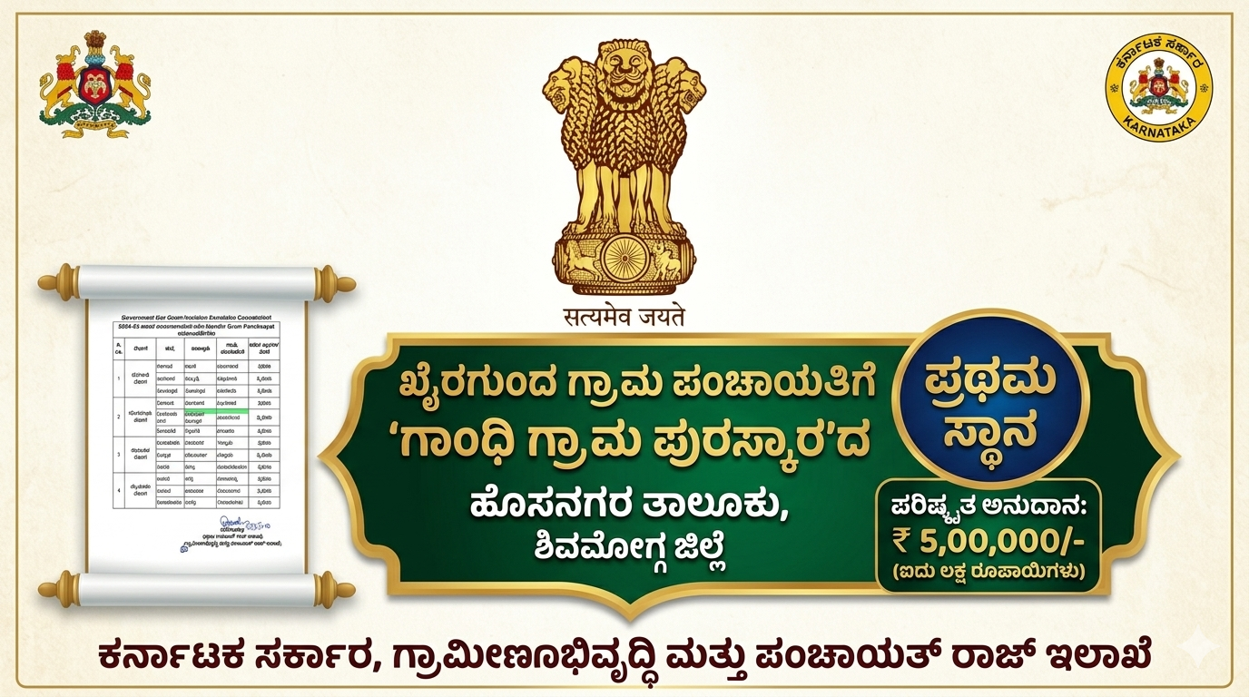 ಹೊಸನಗರ: ಖೈರಗುಂದ ಗ್ರಾಮ ಪಂಚಾಯತಿಗೆ ಪ್ರತಿಷ್ಠಿತ ‘ಗಾಂಧಿ ಗ್ರಾಮ ಪುರಸ್ಕಾರ’ದ ಗರಿ!