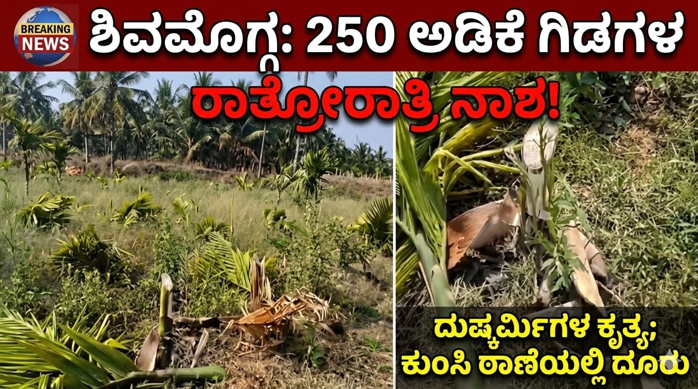ಶಿವಮೊಗ್ಗ : ದುಷ್ಕರ್ಮಿಗಳಿಂದ ಅಡಿಕೆ ತೋಟ ನಾಶ ; ಕುಂಸಿ ಠಾಣೆಯಲ್ಲಿ ಪ್ರಕರಣ ದಾಖಲು