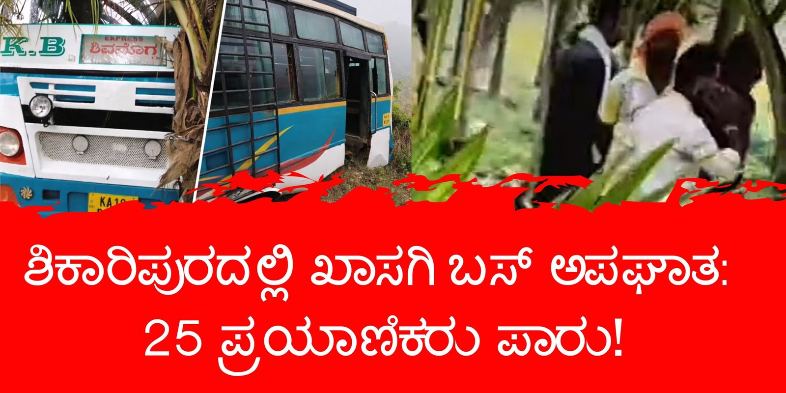 ಶಿಕಾರಿಪುರ: ನಿಯಂತ್ರಣ ತಪ್ಪಿ ತೋಟಕ್ಕೆ ನುಗ್ಗಿದ ಖಾಸಗಿ ಬಸ್; ಕೂದಲೆಳೆ ಅಂತರದಲ್ಲಿ ಪ್ರಯಾಣಿಕರು ಪಾರು!