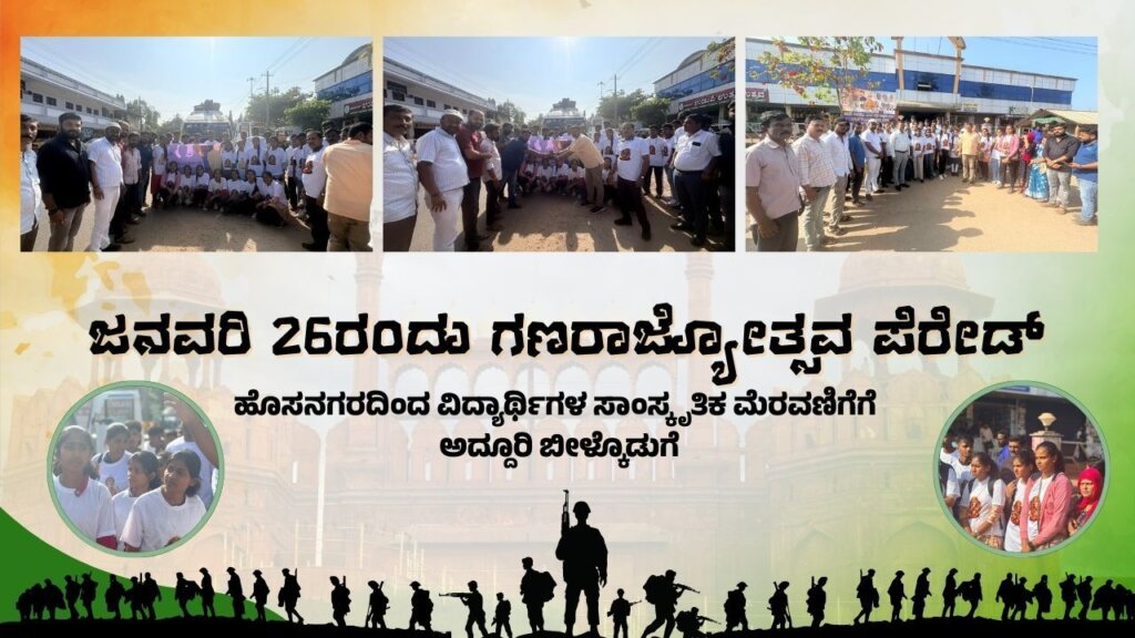 ಹೊಸನಗರ: ಭಾರತದ ಸಂವಿಧಾನ ಜಾರಿಗೆ ಬಂದ ದಿನದ ಸ್ಮರಣಾರ್ಥವಾಗಿ ಪ್ರತಿವರ್ಷ ಜನವರಿ 26ರಂದು ದೆಹಲಿಯ ಕರ್ತವ್ಯ ಪಥದಲ್ಲಿ ನಡೆಯುವ ಗಣರಾಜ್ಯೋತ್ಸವ ಪೆರೇಡ್ ದೇಶದ ಭವ್ಯ ಸೇನಾ ಹಾಗೂ ಸಾಂಸ್ಕೃತಿಕ ವೈಭವವನ್ನು ಪ್ರತಿಬಿಂಬಿಸುತ್ತದೆ.