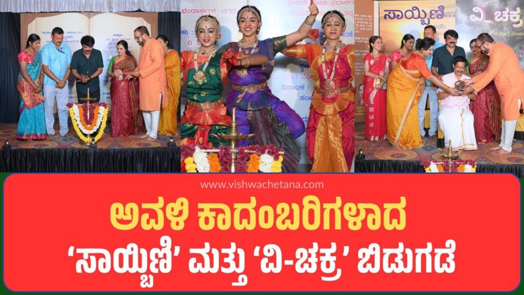 ಮಾಸ್ತಿಕಟ್ಟೆ ಸುಬ್ರಹ್ಮಣ್ಯ ಮತ್ತು ಸುಮ ಸುಬ್ರಹ್ಮಣ್ಯ ದಂಪತಿ, ನಗರ ನಾರಾಯಣ ಕಾಮತ್ ಹಾಗೂ ತೃಪ್ತಿ ಕಾಮತ್ ಅವರು ವಿಶಿಷ್ಟವಾಗಿ ವಿನ್ಯಾಸಗೊಳಿಸಿದ ವೇದಿಕೆಯ ಕವಾಟವನ್ನು ತೆರೆದು ಕಾದಂಬರಿಗಳ ಮುಖಪುಟ ಬಿಡುಗಡೆ ಮಾಡಿದರು. ಬಳಿಕ ಅವಳಿ ಕಾದಂಬರಿಗಳಾದ “ಸಾಯ್ಬಿಣಿ” ಮತ್ತು *“ವಿ-ಚಕ್ರ”*ಗಳನ್ನು ಸಮಾಜಾರ್ಪಣೆ ಮಾಡಲಾಯಿತು.