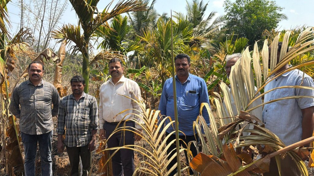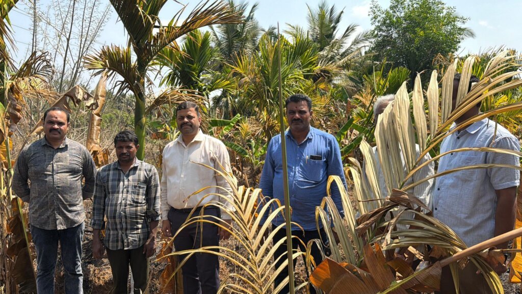 ಘಟನೆಯ ಹಿನ್ನೆಲೆ: ಸರ್ವೇ ನಂಬರ್ 26/1 ರಲ್ಲಿರುವ ಈ ಜಂಟಿ ಕೃಷಿ ಭೂಮಿಯಲ್ಲಿ ಬೆಳೆದಿದ್ದ ಸುಮಾರು 250ಕ್ಕೂ ಹೆಚ್ಚು ಫಲಭರಿತ ಅಡಿಕೆ ಮರಗಳು ವಿದ್ಯುತ್ ಶಾರ್ಟ್ ಸರ್ಕ್ಯೂಟ್ನಿಂದ ಉಂಟಾದ ಬೆಂಕಿಗೆ ತುತ್ತಾಗಿವೆ. ವರ್ಷಗಳ ಕಾಲ ಶ್ರಮವಹಿಸಿ ಬೆಳೆಸಿದ ಬೆಳೆ ಕೈಗೆ ಬರುವ ಹೊತ್ತಿಗೆ ಹೀಗೆ ನಾಶವಾಗಿರುವುದು ಆ ರೈತ ಕುಟುಂಬವನ್ನೇ ಶೋಕ ಸಾಗರದಲ್ಲಿ ಮುಳುಗಿಸಿದೆ.