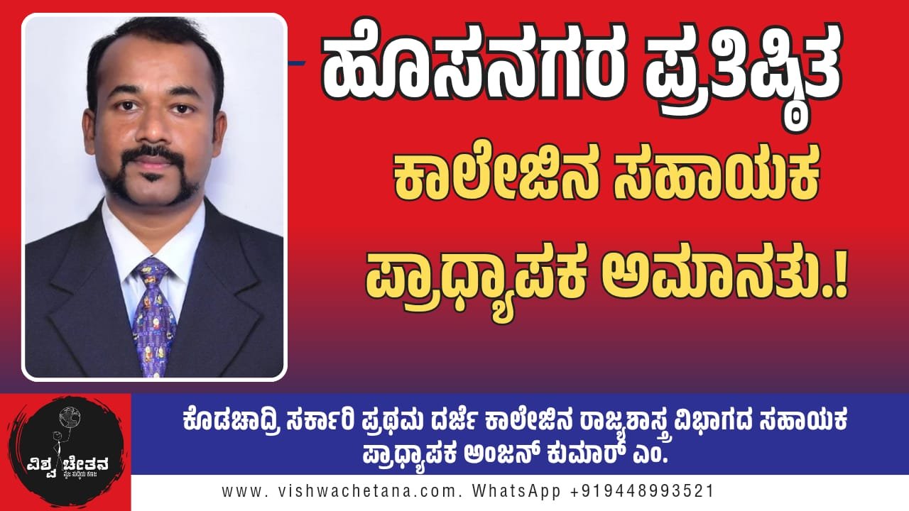 ಜಿಲ್ಲಾ ಸುದ್ದಿ, ತಾಲೂಕು ಸುದ್ದಿ, ರಾಜ್ಯ ಸುದ್ದಿ ಹೊಸನಗರ ಪ್ರತಿಷ್ಠಿತ ಕಾಲೇಜಿನ ಸಹಾಯಕ ಪ್ರಾಧ್ಯಾಪಕ ಅಮಾನತು.! April 17, 2026